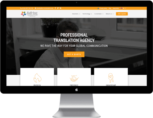 Vi har hastighedsoptimeret AdHoc-translations.com, så kundernes interaktion forbliver i topklasse, i mens sitets funktionalitet og æstetik følger med, som jordbær med fløde.